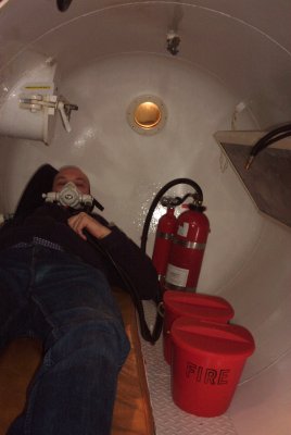 Decompression Illness is caused by Nitrogen Bubbles (which we are trying to get rid of), if you breathe 100% Oxygen (under pressure) we will get rid of these troublesome Nitrogen Bubbles far quicker.